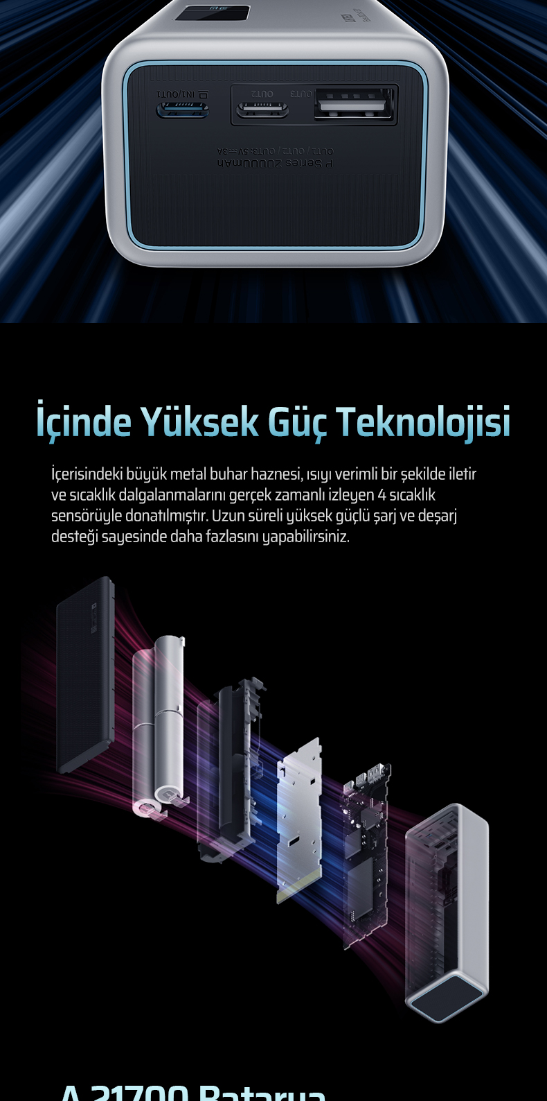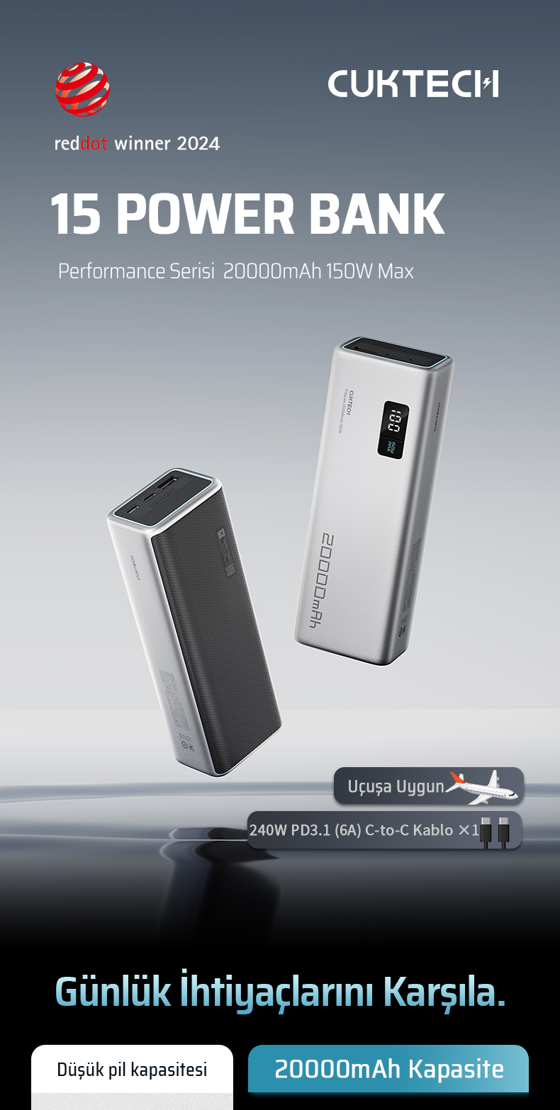 CUKTECH 15 Powerbank 20000 mAh | 150 W PD 3.1 Süper Hızlı Şarj | 3 Port (2C1A) | LED Ekranlı Taşınabilir Şarj Cihazı