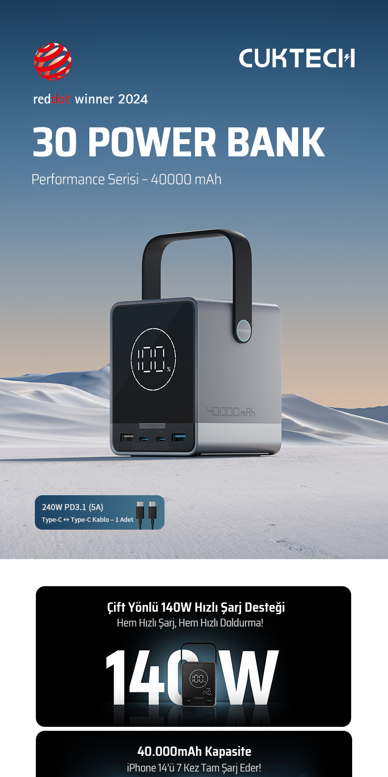 CUKTECH 30, sadece bir powerbank değil; güçlü, güvenilir ve uzun ömürlü bir enerji çözümüdür.