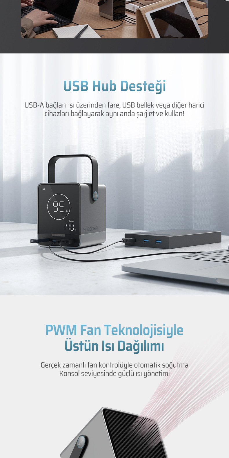 Yüksek hızlı şarj gücü, gelişmiş akıllı kontrol sistemi ve dayanıklı yapısıyla, günlük kullanımın ötesinde güvenilir bir güç kaynağı sunar.