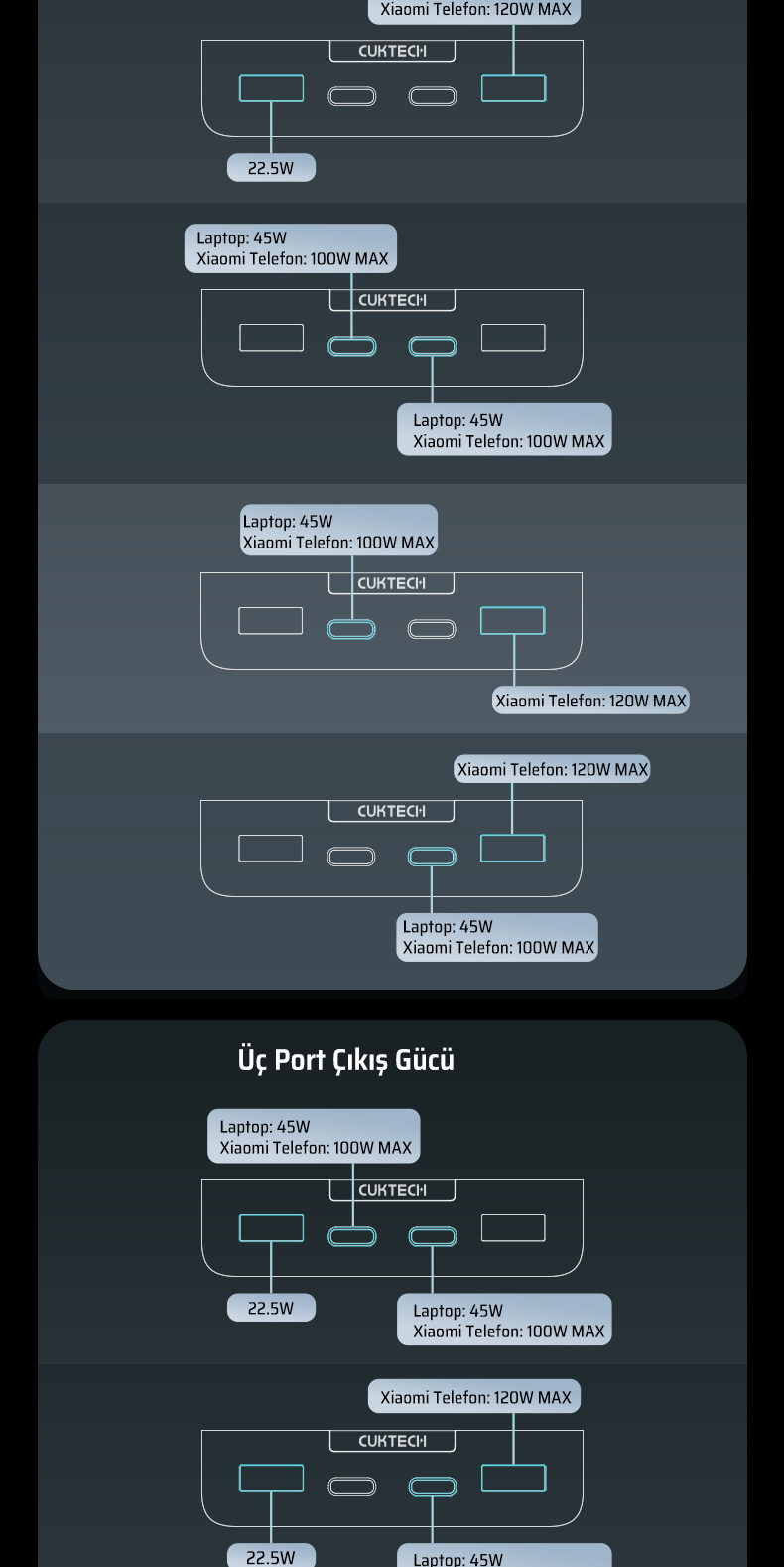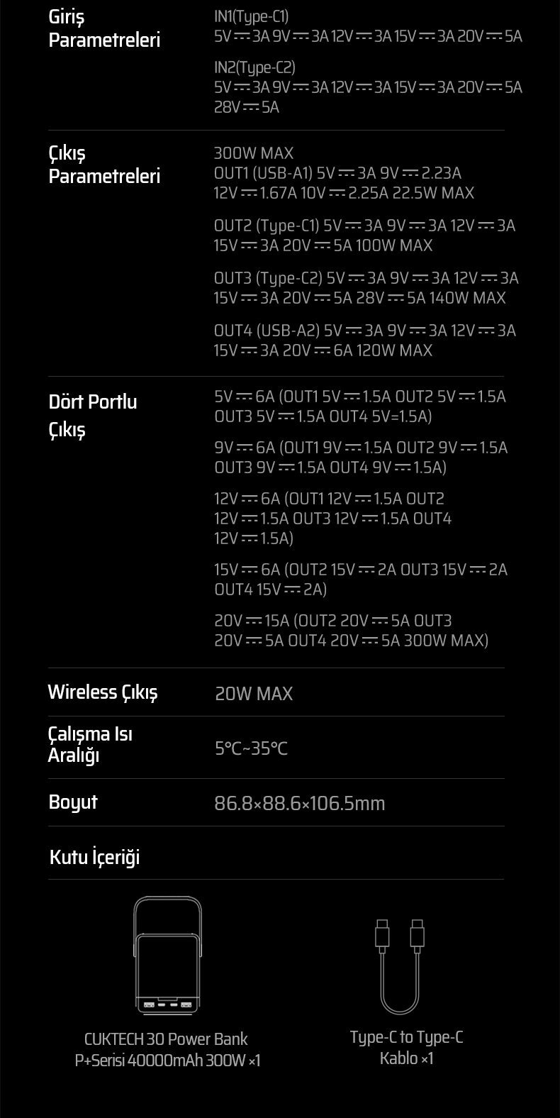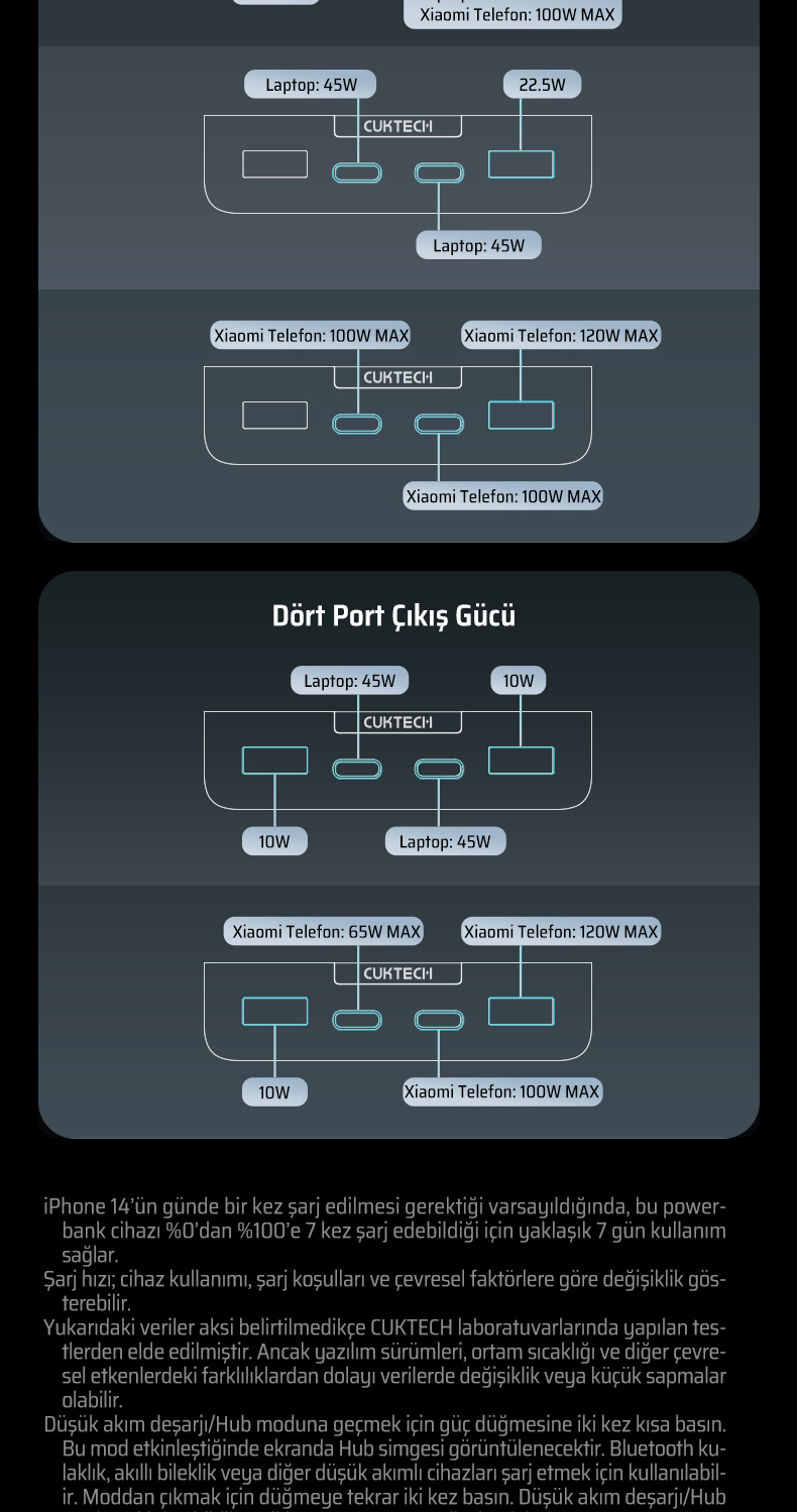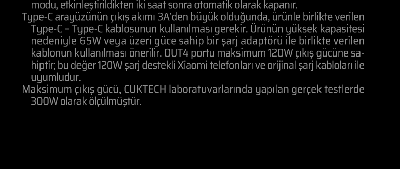 CUKTECH 30, PD 3.1 standardı ile maksimum 300 W çıkış gücüne ulaşır.