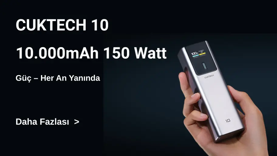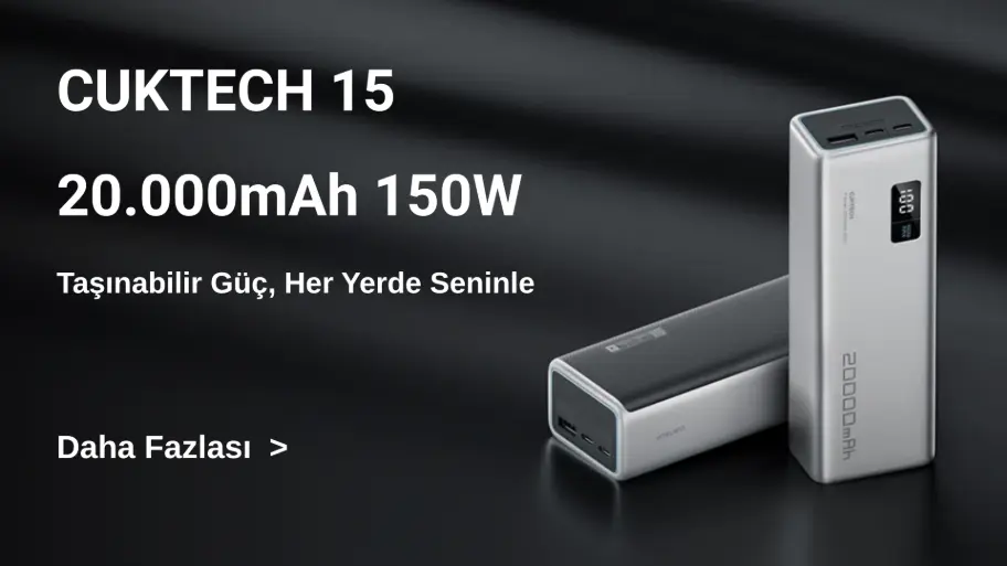 CUKTECH 15 Powerbank 20000 mAh | 150 W PD3.1 Süper Hızlı Şarj | 3 Port (2C1A) | TFT Ekranlı Taşınabilir Şarj Cihazı – Laptop, MacBook, iPhone, Samsung, Xiaomi ile Uyumlu