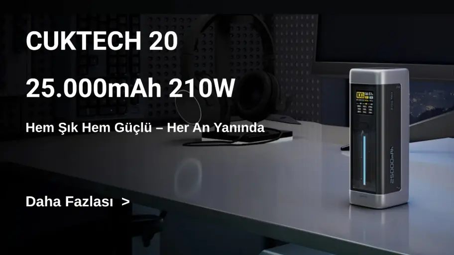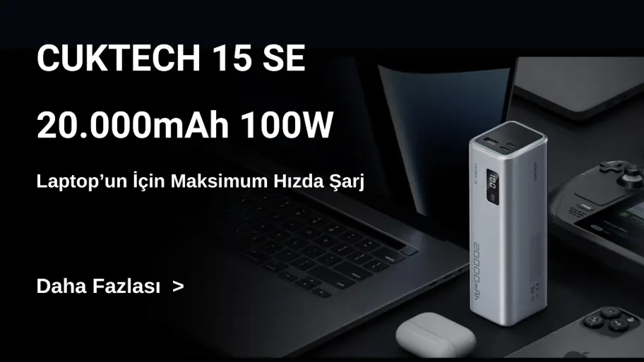 CUKTECH 15 SE Powerbank 20000 mAh | 100 W PD 3.1 Süper Hızlı Şarj | 3 Port (2C1A) | TFT Ekranlı Taşınabilir Şarj Cihazı