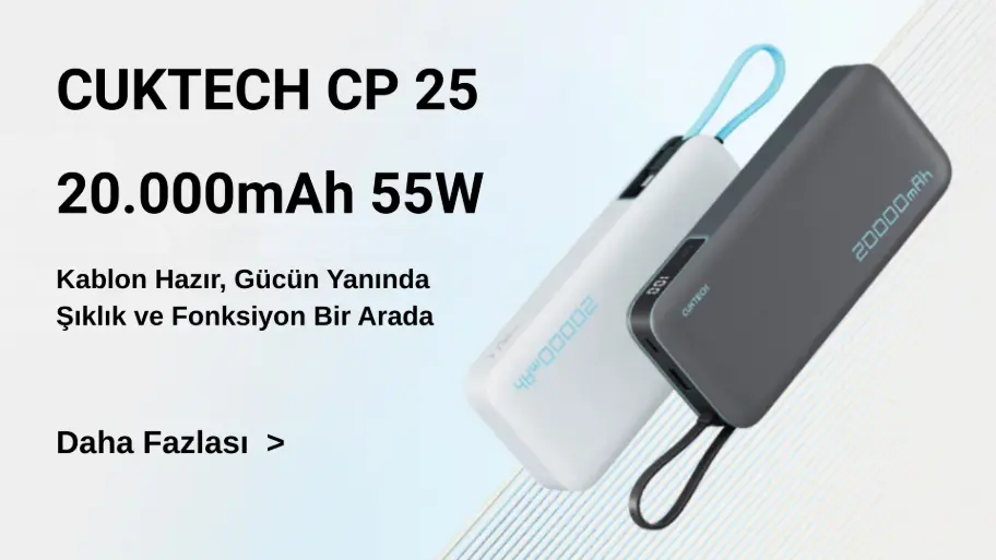 CUKTECH 25 Powerbank 20000 mAh | 55 W PD3.0 Hızlı Şarj | 2 Port (Type-C + USB-A) | Kompakt Taşınabilir Şarj Cihazı – Laptop, MacBook, iPhone, Samsung, Xiaomi ile Uyumlu