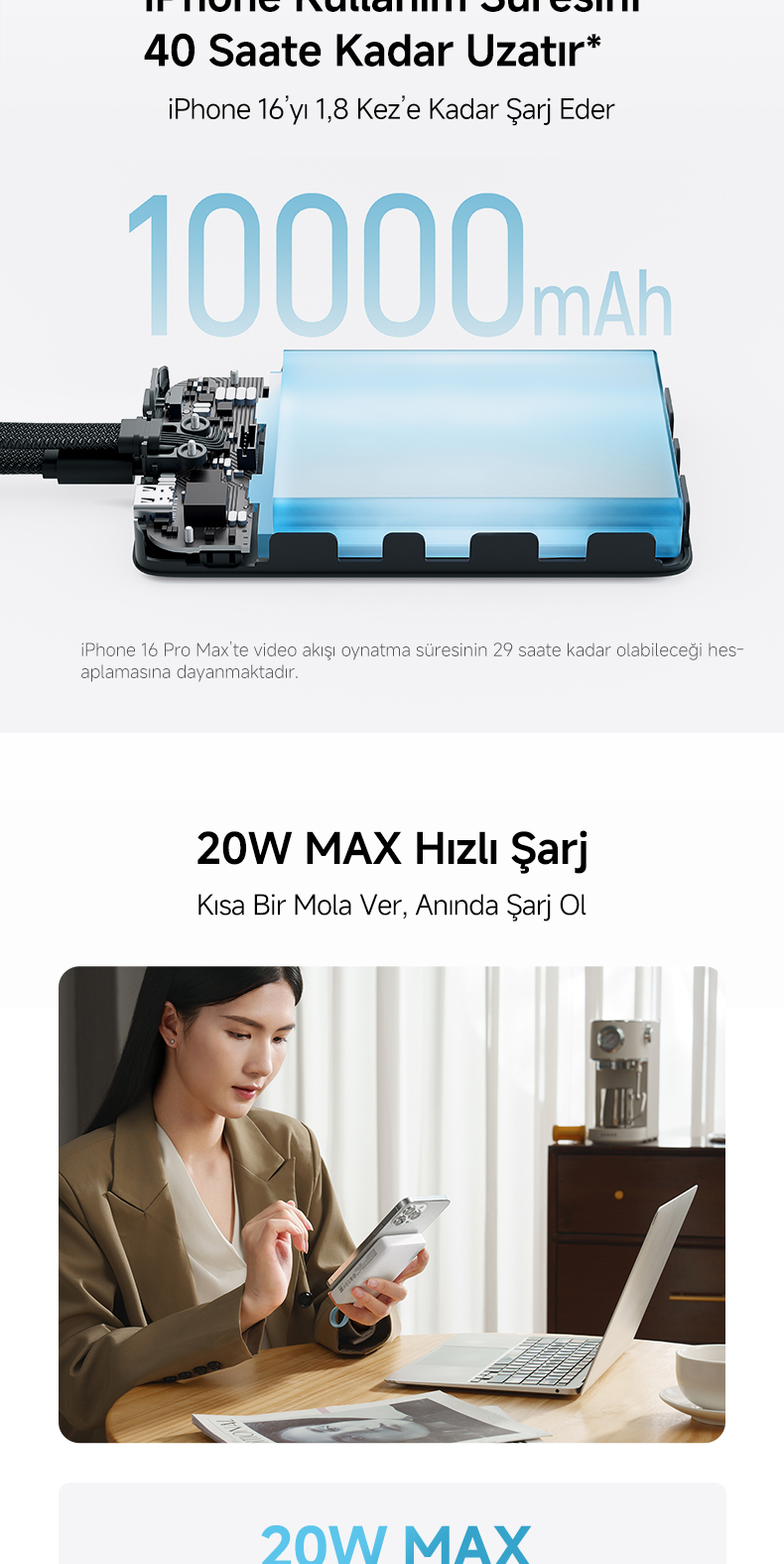 10.000 mAh Yüksek Kapasite – Kompakt Güç Kaynağı