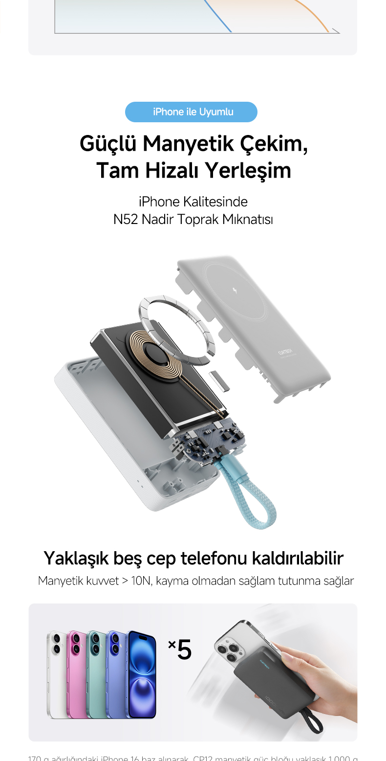 iPhone 12-17 serileriyle mükemmel uyum içinde, güvenli ve kesintisiz enerji sunarak günlük hayatta konforu maksimuma çıkarır.